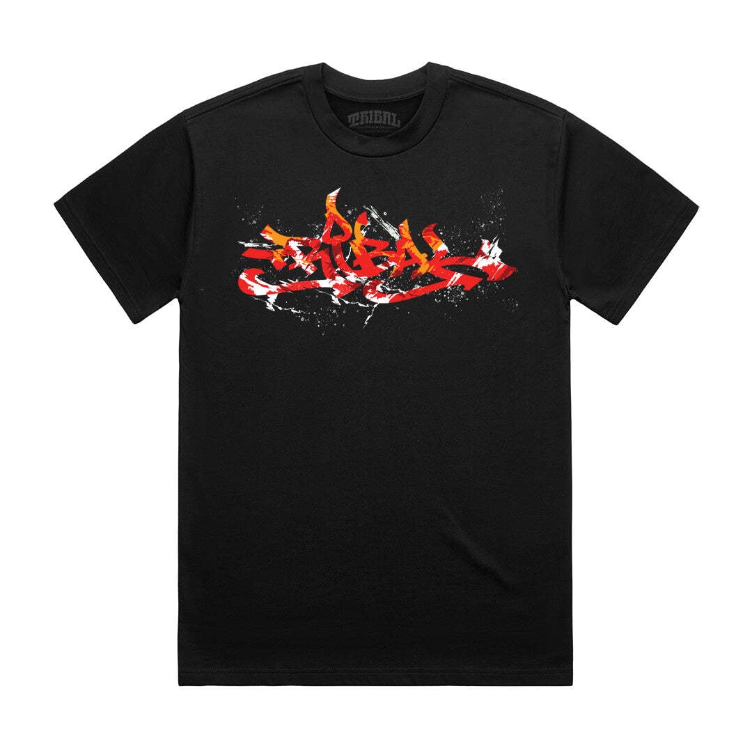 100% cotton Mens tee with "RED CLASSIC SPLATS" print By TRIBAL STREETWEAR.